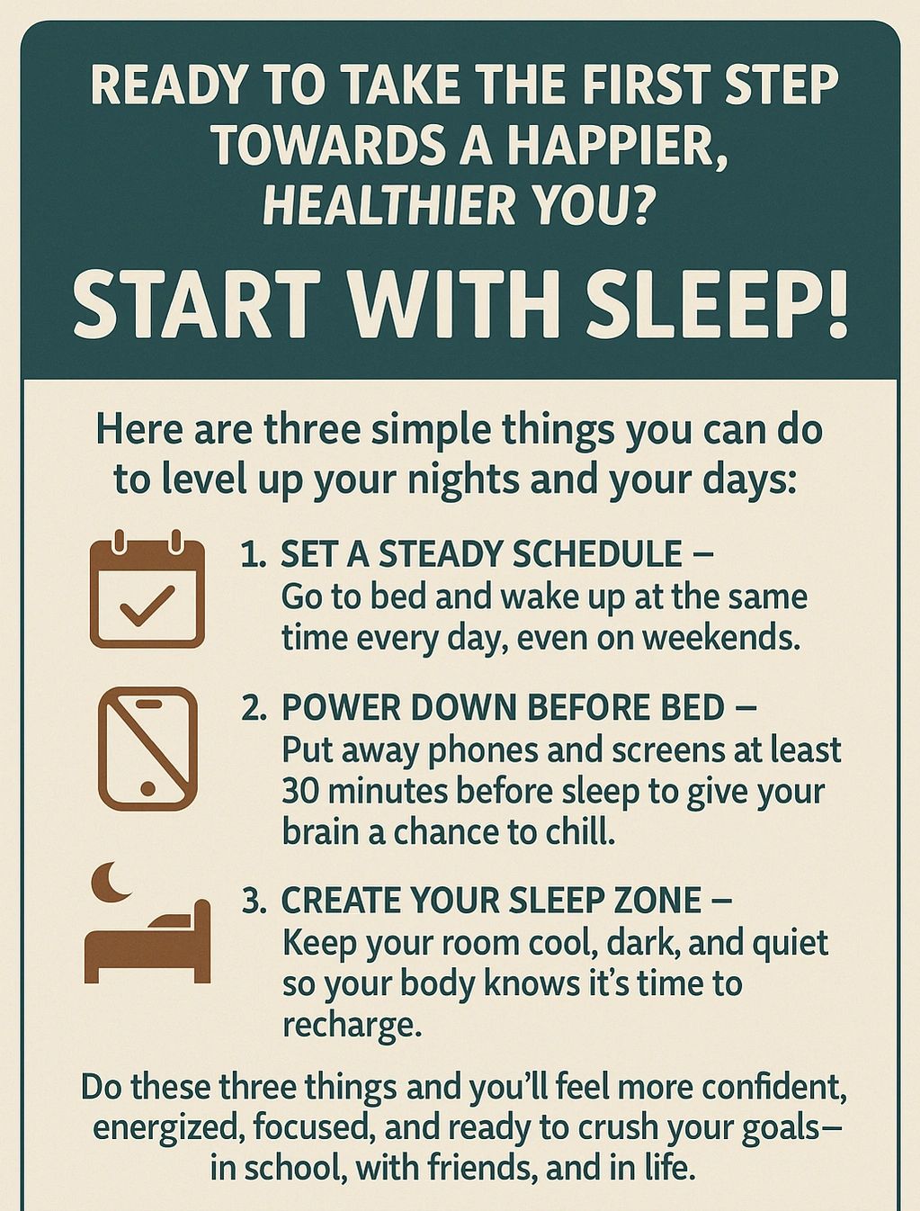 And here’s the bonus: these habits don’t just make today better—they set you up for a healthier, stronger, and more successful future. Sleep isn’t wasted time. It’s how you win—now and for life.